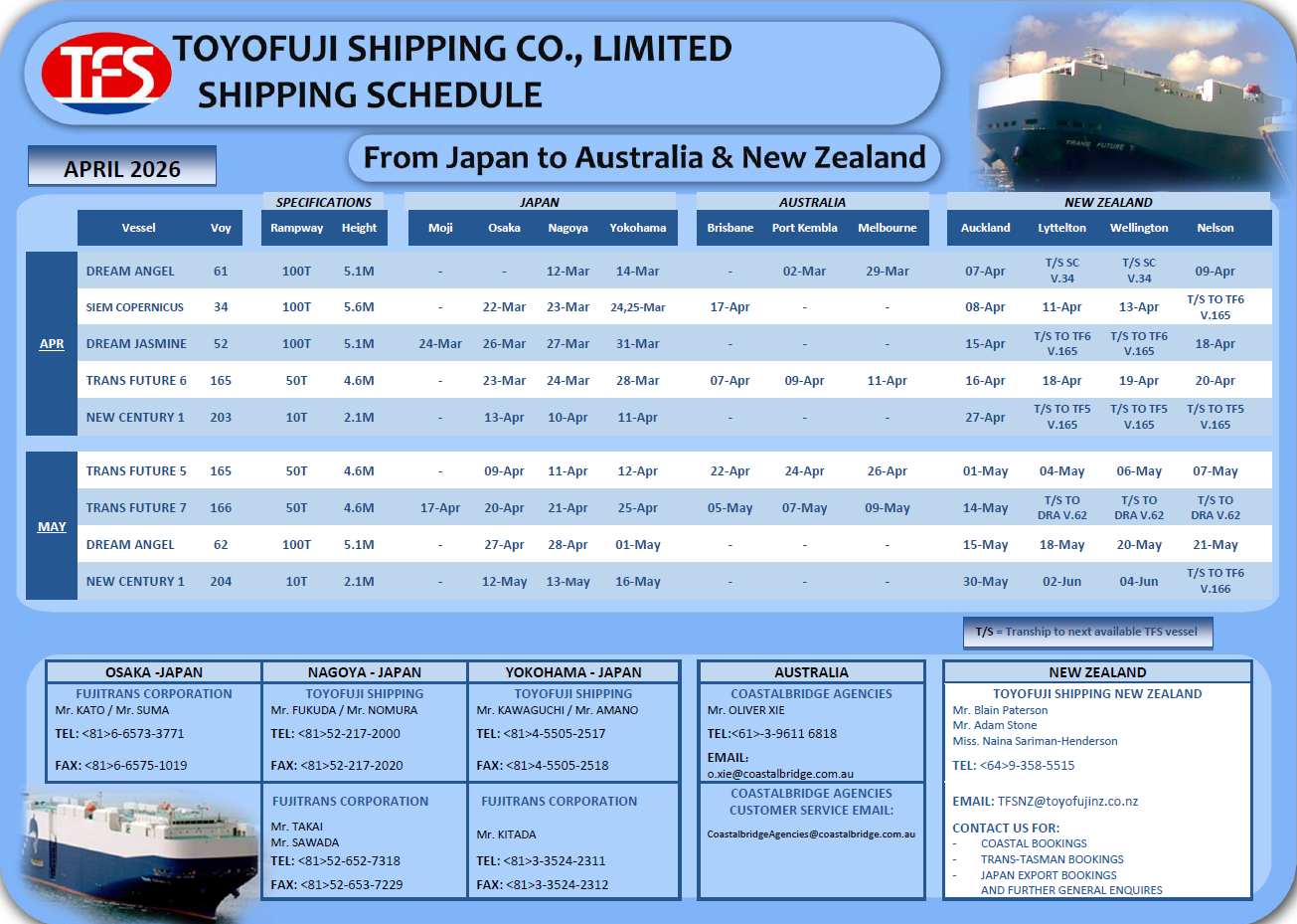 TFSNZ Shipping Schedule Click View PDF